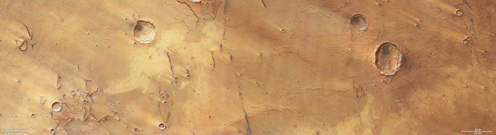 Jüngst prozessierte Bilder aus Daten der hochauflösenden Stereokamera HRSC zeigen eine besondere Art von Kratern im Tiefland der nördlichen Halbkugel des Mars. Das vom Deutschen Zentrum für Luft- und Raumfahrt (DLR) entwickelte Kameraexperiment an Bord der ESA-Mission Mars Express ist schon seit Januar 2004 im Einsatz. Forschende erstellen mit diesen Bilddaten hochaufgelöste digitale Geländemodelle und ein globales topographisches Kartenwerk und stellen wertvolle Informationen zur Entstehung und Entwicklung unseres planetaren Nachbarn bereit.