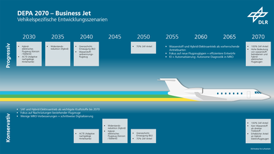 Im Mittelpunkt des Projekts standen zwei alternative Zukunftsszenarien für verschiedene Marktsegmente wie Mainliner, Regionalflugzeuge, Kleinflugzeuge, Business Jets und Überschallflugzeuge. Das konservative Szenario nimmt einen moderaten, schrittweisen technologischen Fortschritt an. Das progressive Szenario geht hingegen von einem schnelleren Markteintritt neuer emissionsfreier Technologien aus. Beide Szenarien wurden unter Berücksichtigung eines prognostizierten Wachstums des weltweiten Luftverkehrs modelliert, der sich bis 2070 voraussichtlich verdoppeln wird. Neben Erkenntnissen aus der Vorgängerstudie DEPA 2050 wurden auch externe Einflussfaktoren wie Bevölkerungswachstum, Energiepreise und geopolitische Veränderungen einbezogen.