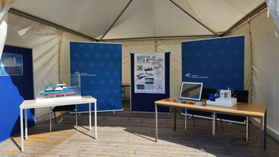 Besuchende haben die Möglichkeit, am DLR-Stand ein Modell des geplanten Forschungsschiffs zu sehen. Das Schiff wird aktuell gebaut. Es soll als schwimmendes Labor für die kohlenstoffarme, klimaverträgliche Schifffahrt auf Basis von wasserstoffbasierten Treibstoffen und Batterien dienen.
