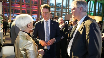 Hendrik Wüst, Ministerpräsident des Landes Nordrhein-Westfalen, eröffnete das Fest gemeinsam mit Mona Neubaur, Ministerin für Wirtschaft, Industrie, Klimaschutz und Energie, und dem Bevollmächtigten des Landes Nordrhein-Westfalen beim Bund, Dr. Matthias Roßbach.