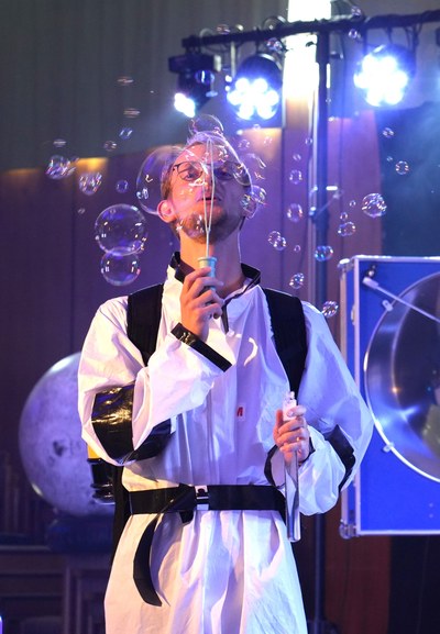 Die DLR_Raumfahrt_Show hat in den vergangenen Jahren schon weit mehr als 80.000 Kinder in ganz Deutschland begeistert: Zu Beginn des Bühnenprogramms zählten sie lautstark den Countdown mit und verfolgten danach gespannt die vielen verblüffenden Experimente. Sie lauschten den Erklärungen der Moderatorinnen und Moderatoren, lachten über witzige Videos und betrachteten staunend eindrucksvolle Bilder der Erde auf Großbildleinwand. Aber nicht nur dem jungen Publikum machten die Shows großen Spaß: Auch viele Lehrkräfte, die mit ihren Klassen die Aufführungen besuchten, lobten den unkonventionellen Ansatz zur Wissensvermittlung und MINT-Förderung.
