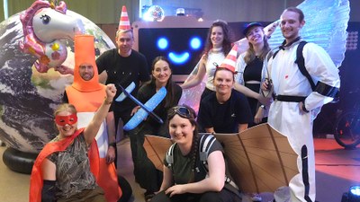 Die 90-minütige Show richtet sich bewusst schon an jüngere Schulkinder der Jahrgangsstufen 4 bis 6. Die Moderatorinnen und Moderatoren stellen ihnen sowohl aktuelle Forschungsprojekte als auch weiterreichende Zukunftsvisionen vor. Dabei wird das Publikum immer wieder eingebunden. Mal machen alle beim Training für den Flug ins All mit, mal helfen Kinder auf der Bühne beim Experiment mit einer Wärmebildkamera. Manche der Versuchsaufbauten wurden von den Schülerlaboren des DLR, den DLR_School_Labs, eigens für die Tour entwickelt. Andere stammen vom Team der bekannten Wissenschaftsshow „Die Physikanten“. Oft geht es spektakulär zu – zum Beispiel, wenn riesige Nebel-Ringe quer durch den Saal über die Köpfe des Publikums hinweg schweben. Bei anderen Programmpunkten wird es eher lustig – etwa, wenn Hula-Hoop-Reifen oder ein Ballon in Form eines Einhorns zum Einsatz kommen. Oder wenn die Zeitmaschine „Holly“ – eine weitere Neuerung der DLR_Raumfahrt_Show – dem Publikum beim Quiz heimlich vorsagt.