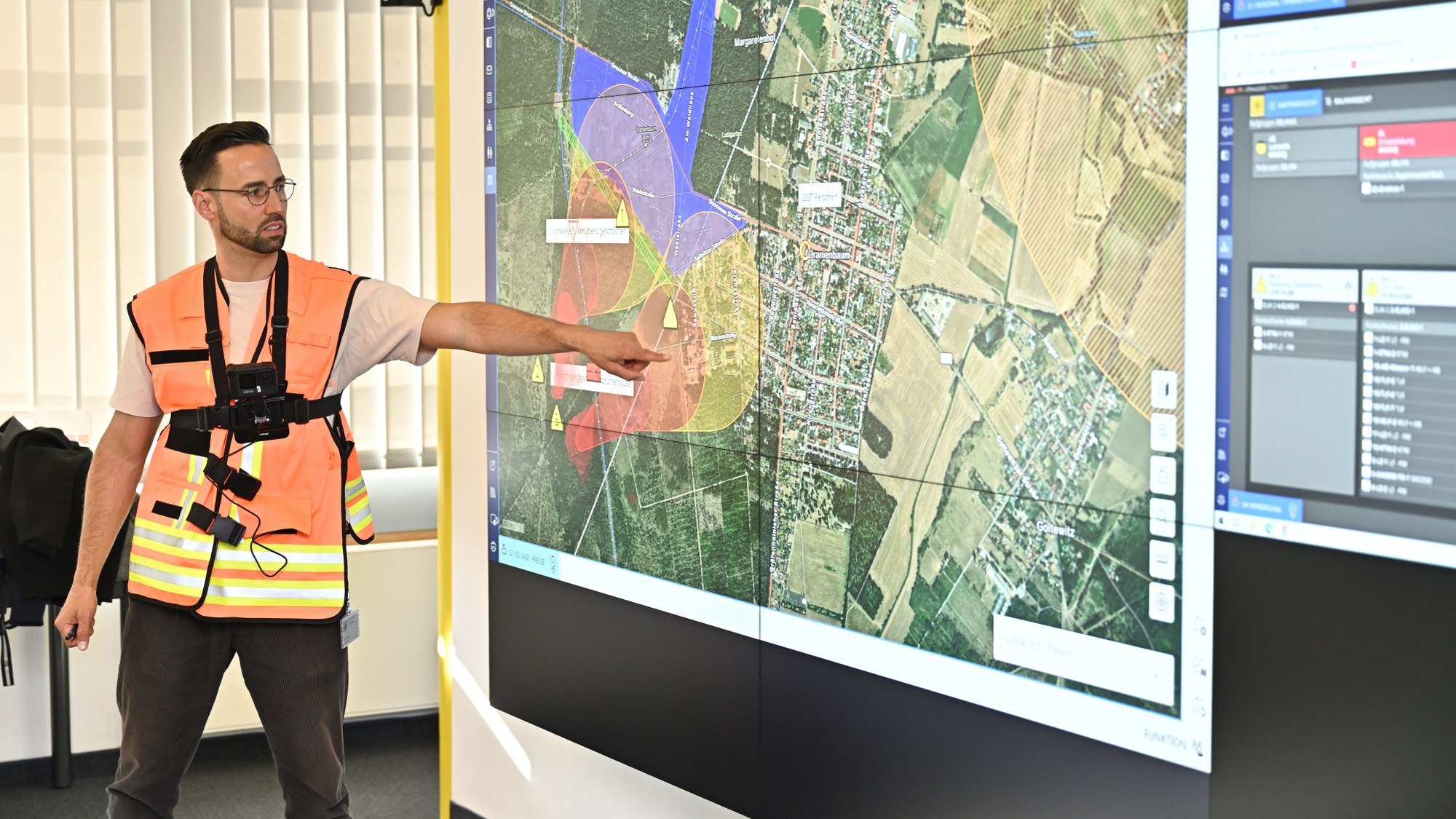 Die Livebilder des MACS-Kamerasystems helfen den Stabsmitgliedern bei der Lageaufklärung.