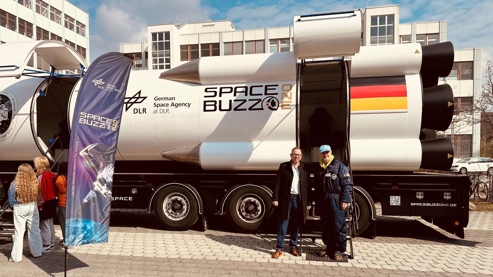 Bezirksbürgermeister Oliver Igel (Treptow-Köpenick) nutzte die Gelegenheit für einen Besuch am DLR-Standort Berlin-Adlershof und war sichtlich beeindruckt vom SPACEBUZZ ONE.