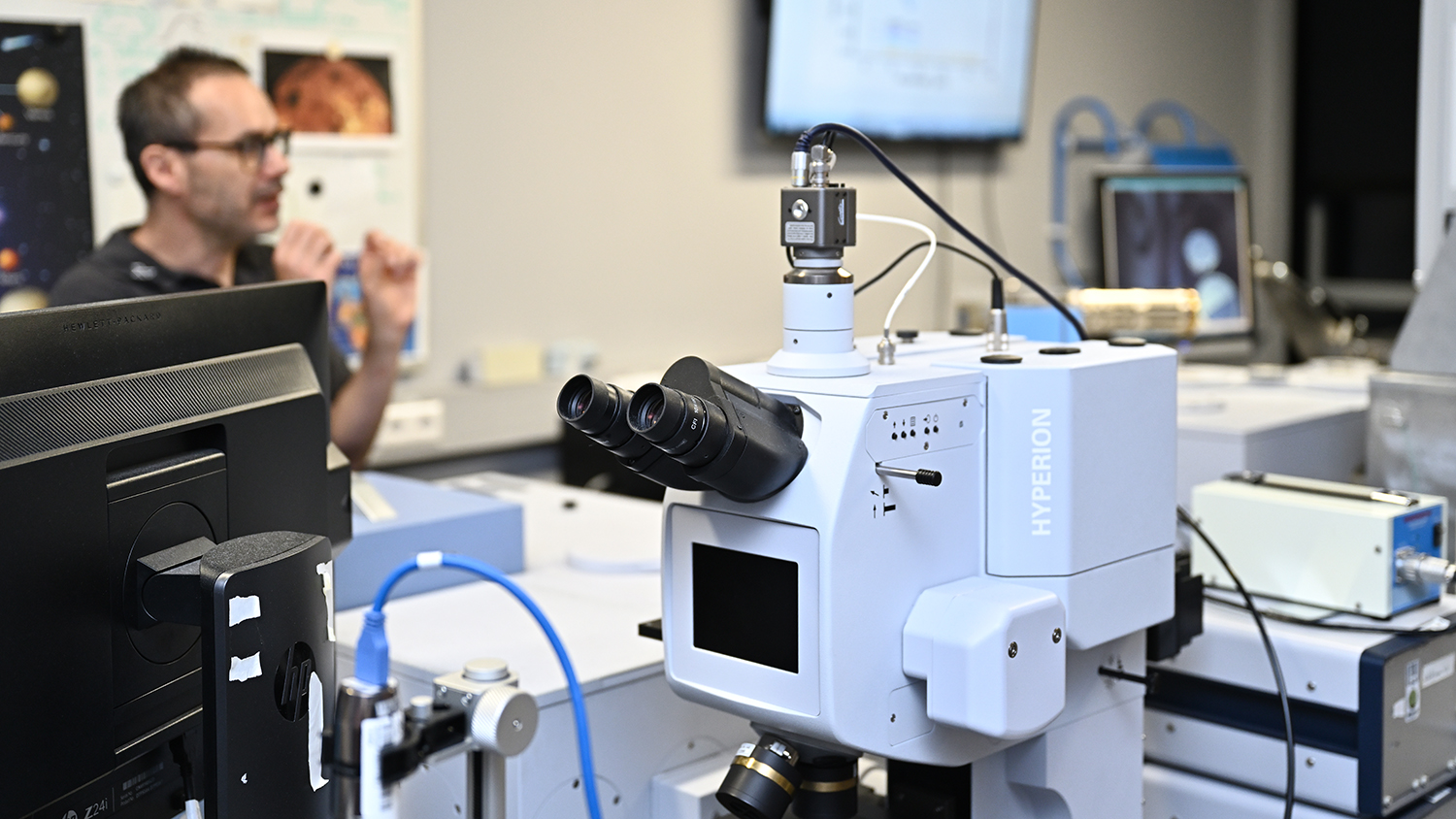 Die interessierten Besuchenden bekamen einen Einblick in das Planetenspektroskopie-Labor (PSL), in dem die Spektren verschiedenster Materialien, wie zum Beispiel von Meteoriten oder Proben von Probenrückführungsmissionen, gemessen werden.