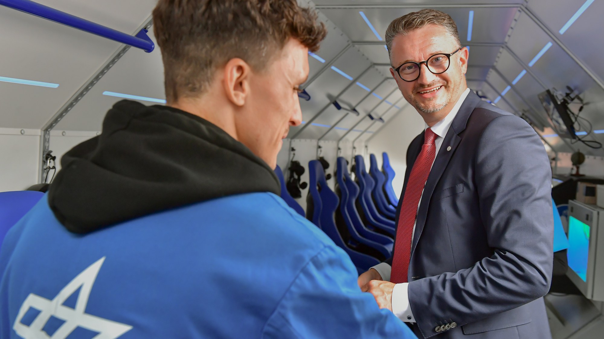 Der Minister beim Einstieg in den SPACEBUZZ ONE