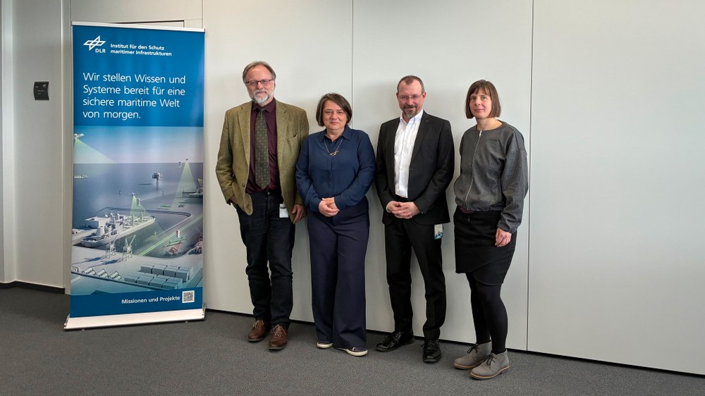 Von links: Dr. Lars Schanz, Leiter der DLR-Standorte Nord, Dr. Henrike Müller, Bremer Senatorin für Umwelt, Klima und Wissenschaft, Prof. Frank Sill Torres, Direktor des DLR-Instituts für den Schutz maritimer Infrastrukturen, Karolina Kumar, Staatsrätin bei der Bremer Senatorin für Umwelt, Klima und Wissenschaft.