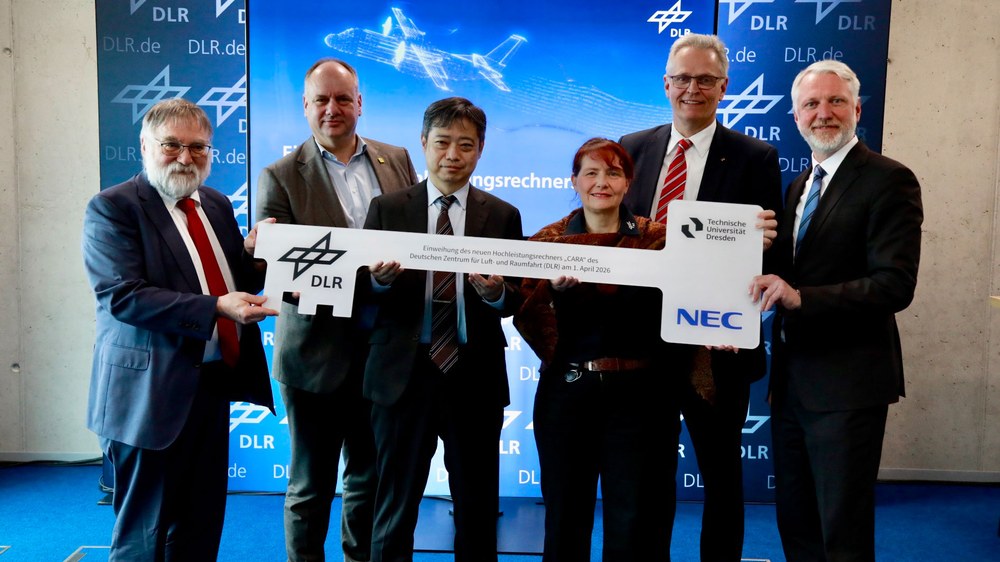 Mit der Erneuerung des Supercomputers CARA (Computing for Advanced Research in Aerospace) in Dresden investiert das Deutsche Zentrum für Luft- und Raumfahrt (DLR) in die Zukunft und nimmt seinen neuen Hochleistungsrechner in Betrieb. Damit begegnet das DLR den steigenden Anforderungen an Rechenleistung für Forschung und Entwicklung in zentralen Innovationsfeldern wie Luftfahrt, Raumfahrt, Energie, Verkehr, Quantentechnologien und Künstlicher Intelligenz. Am 1. April 2026 wurde der modernisierte Supercomputer CARA feierlich übergeben.