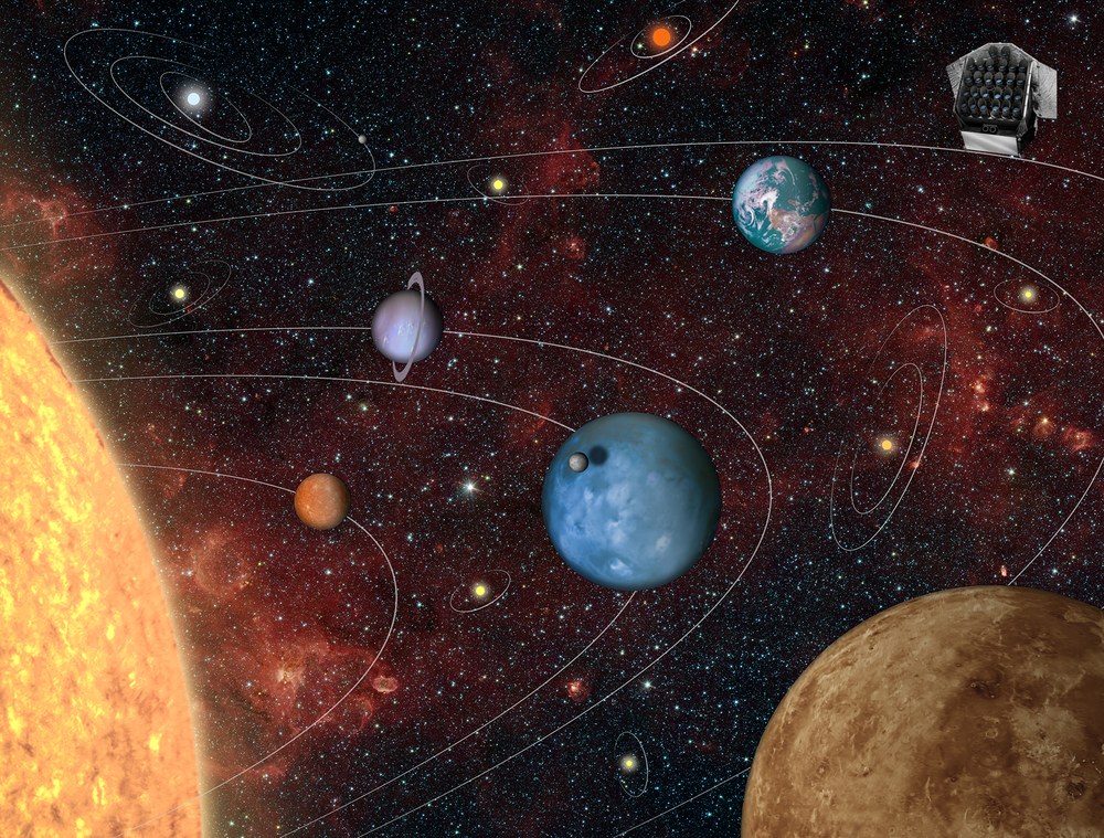 Erst seit dem Jahre 1995 weiß die Astronomie, dass, ähnlich wie in unserem Sonnensystem, auch andere Sterne von Planeten umkreist werden. Der Nachweis kann unter anderem dadurch geführt werden, indem man die Lichtstärke eines anderen Sterns misst, vor dessen Scheibe ein Planet periodisch vorbeizieht. Dabei kommt es bei solche einem „Transit“ zu einem minimalen Lichtabfall, den man messen kann. Das Weltraumteleskop PLATO wird ab 2027 mit 26 Kameras in der Milchstraße, unserer Heimatgalaxie, gleichzeitig rund 200.000 Sterne mit der „Transitmethode“ beobachten und nach extrasolaren Planeten suchen. Eines der wesentlichen wissenschaftlichen Ziele ist die Suche nach erdähnlichen Planeten, die sonnenähnliche Sterne umkreisen.