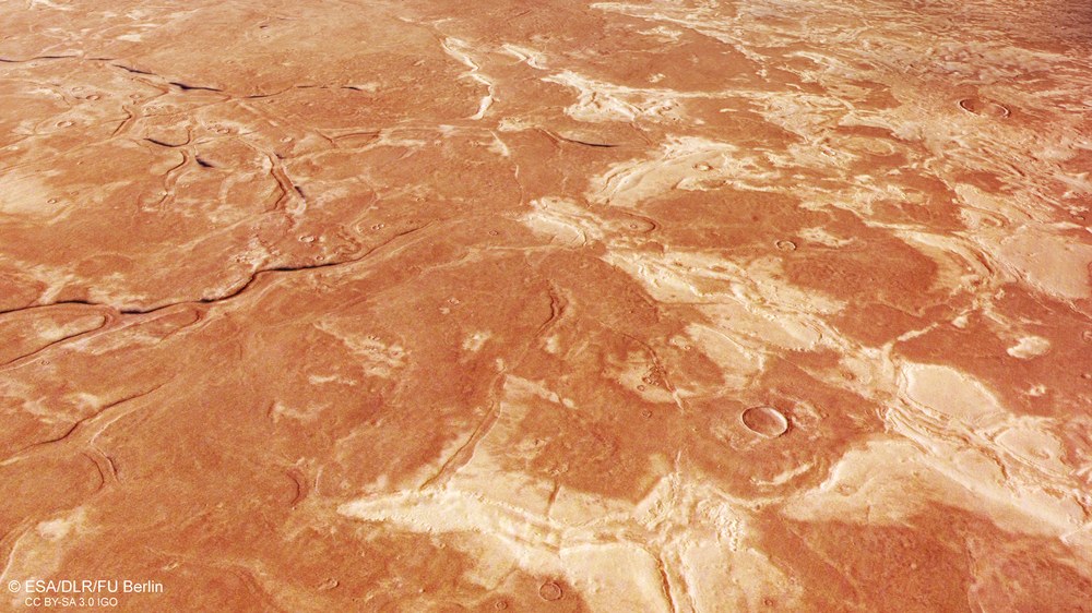 - Bilder der deutschen Stereokamera HRSC zeigen einen Teil des 3.300 Kilometer großen Einschlagsbeckens Utopia Planitia auf dem Mars.