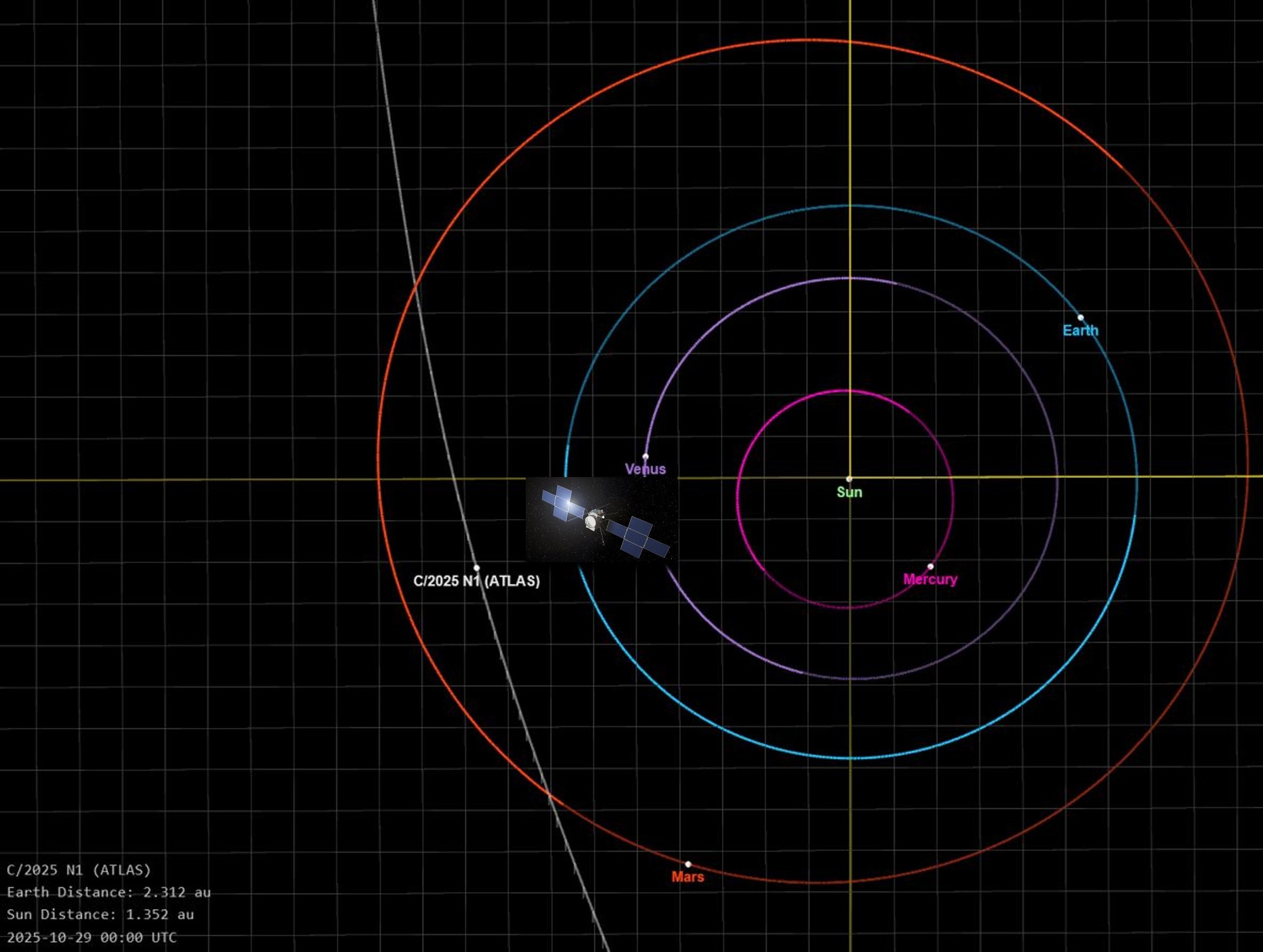 Von der Erde aus konnte 3I/ATLAS auf seinem Weg um die Sonne ab Herbst 2025 nicht mehr beobachtet werden – ausgerechnet während der aktivsten und wissenschaftlich interessantesten Kometenphase in Sonnennähe. Dafür konnte die JUICE-Sonde, die von ihrer Position auf der anderen Seite der Sonne etwa auf Höhe der Bahn des Planeten Venus aus einen guten Blick auf 3I/ATLAS hatte. Der Betriebsplan der JUICE-Mission sieht eigentlich keine wissenschaftlichen Aktivitäten während der interplanetaren Reise zum Jupitersystem vor. Das Projektteam konnte dennoch kurzfristig eine Beobachtungskampagne für einige der Instrumente entwerfen, darunter auch das Kamerasystem JANUS.