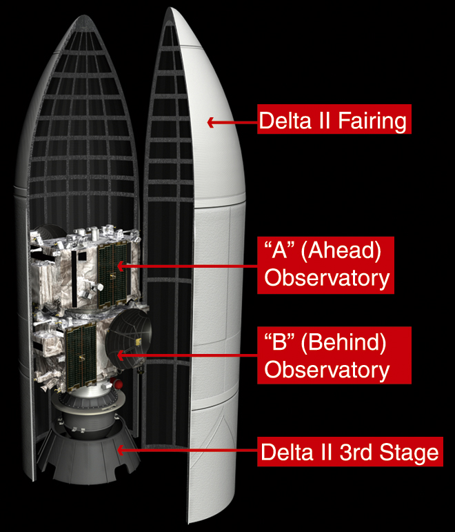 Die beiden STEREO-Sonden wurden gemeinsam auf einer Delta-Rakete gestartet.