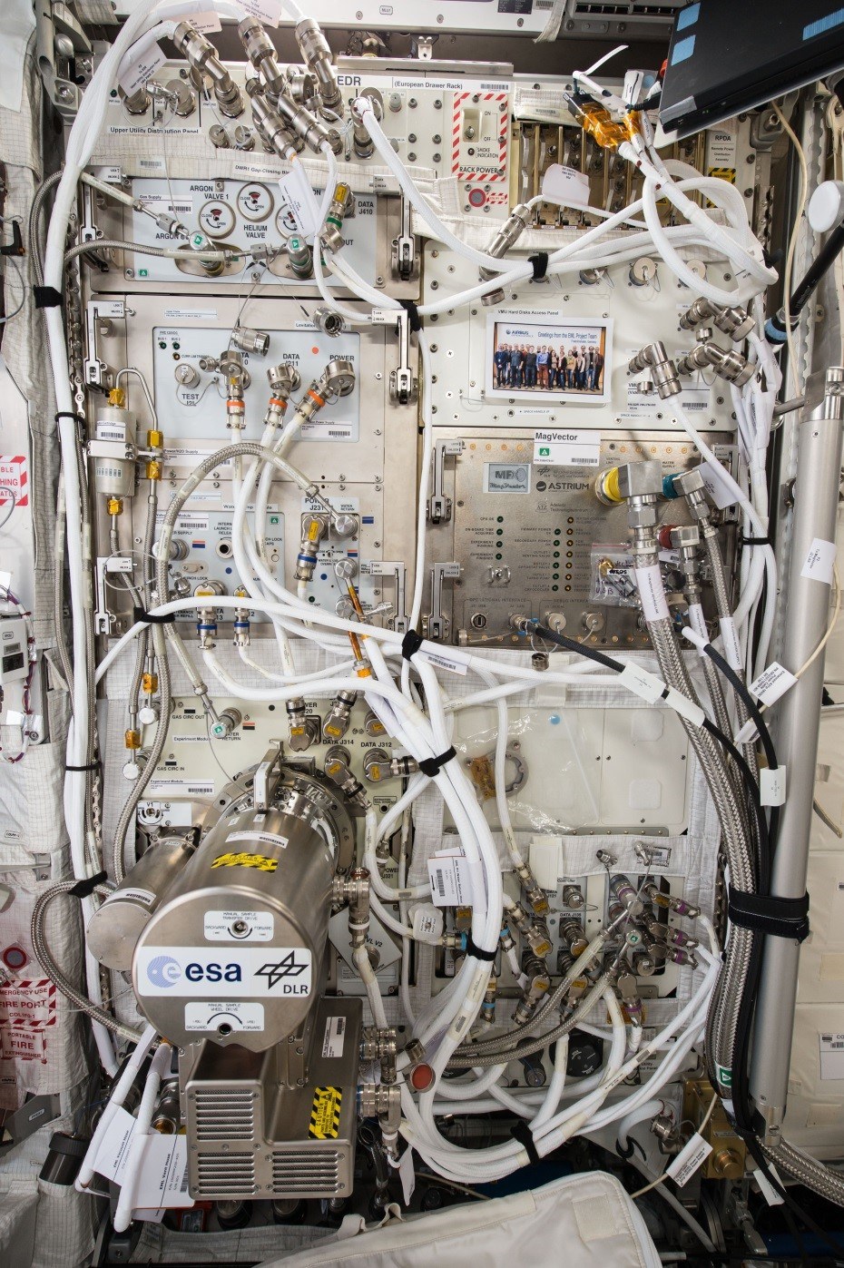 Die EML-ISS Anlage wurde als Gemeinschaftsprojekt im Auftrag der Europäischen Weltraumorganisation ESA und dem DLR von Airbus Defence & Space entwickelt und 2014 von ESA-Astronaut Alexander Gerst auf der ISS installiert. Sie befindet sich im europäischen Columbus-Modul. Die Anlage wurde seitdem stets auf dem neuesten Stand der Wissenschaft gehalten und mit anderen Funktionen erweitert. Die EML-Probenkammer enthält 18 Proben (eine sogenannte Probencharge).