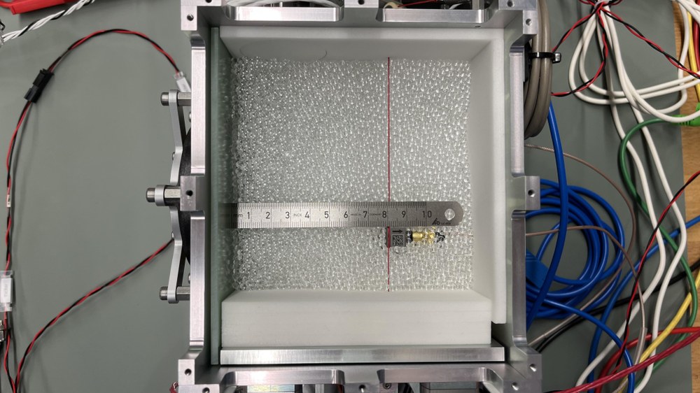 Ziel des Experiments GraSCha (Granular Sound Characterization) ist es, Erkenntnisse über die innere Struktur von Granulatpackungen zu erhalten. Dabei ist vor allem der Bereich interessant, in dem die einzelnen Teilchen ihren gegenseitigen Kontakt verlieren. Bekannte Phänomene auf der Erde sind: Sand beginnt zu rieseln oder ein Erdrutsch löst sich. Das Experiment besteht aus einem Kasten, der mit kleinen Glaskugeln gefüllt ist. Eine Wand der Probenzelle kann bewegt und so der Druck auf die Glaskugeln eingestellt werden. Abhängig vom Druck bildet sich eine unterschiedlich lose oder dichte Kugelpackung aus. Die Forschenden geben Schallsignale auf die unterschiedlich dichten Kugelpackungen. Aus der Zeit, die der Schall für den Weg durch die Kugeln braucht, wird die Schallgeschwindigkeit ermittelt. Daraus kann man Rückschlüsse ziehen: Einerseits auf die innere Struktur der Packung, andererseits auf die sogenannte Druckabhängigkeit, also darauf, wie sich die Granulatteilchen bei höherem Druck gegenseitig zunehmend blockieren.