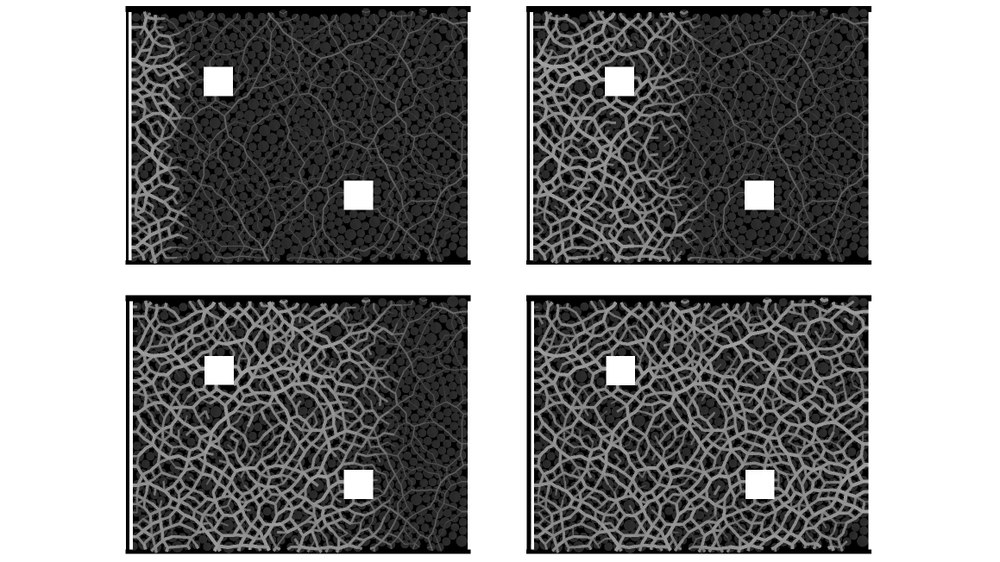 Auf der Erde lässt sich auch der Druck auf die einzelnen Granulatpartikel in einem Gefäß nicht einfach beschreiben. Wie bei Flüssigkeiten herrscht am Boden ein höherer Druck als oben. Der genaue Verlauf des Drucks hängt hier im Gegensatz zu Flüssigkeiten wesentlich von Reibungseffekten zwischen den Partikeln ab. Diese inhomogene Druckverteilung ergibt sich aus der Schwerkraft, die auf die Partikel wirkt, und verursacht auch eine inhomogene Verteilung der Kugeln. In Schwerelosigkeit sind diese Störfaktoren nicht vorhanden, die Kugeln verteilen sich stets homogen im Gefäß.