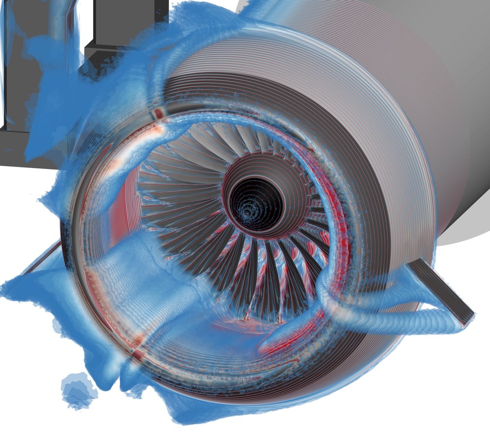 Unsere Wissenschaftlerinnen und Wissenschaftler erarbeiten hierbei methodische Verbesserungen von turbulenzauflösenden Simulationsverfahren, entwickeln präzise Kopplungsmethoden zwischen spezialisierten Codes für Außenaerodynamik und Triebwerksströmung und ermöglichen die effiziente Nutzung von GPU-Beschleunigern in instationären Simulationen. Gemeinsam mit dem Industriepartner und Verbundführer Rolls-Royce Deutschland demonstrieren und validieren wir die entwickelten Verfahren an anwendungsnahen Testfällen. Dazu gehören beispielsweise hochauflösende Simulationen eines Triebwerkseinlaufs im Seitenwind zur Analyse der gestörten Fan-Zuströmung sowie instationär-gekoppelte Simulationen der aerodynamischen Wechselwirkungen zwischen Flugzeug installiertem Triebwerk.