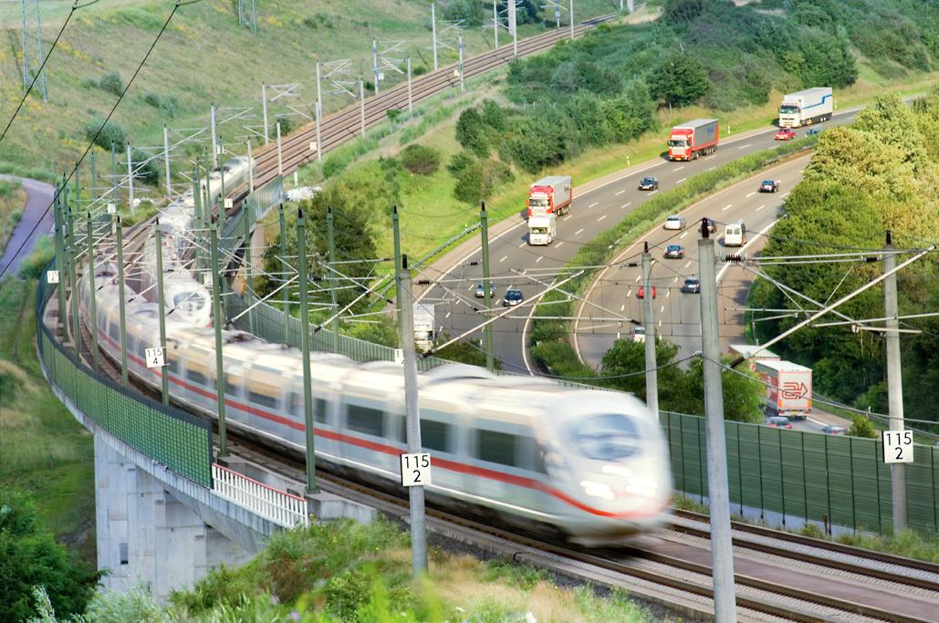 ICE-Strecke Köln-Frankfurt entlang der Bundesautobahn A3.