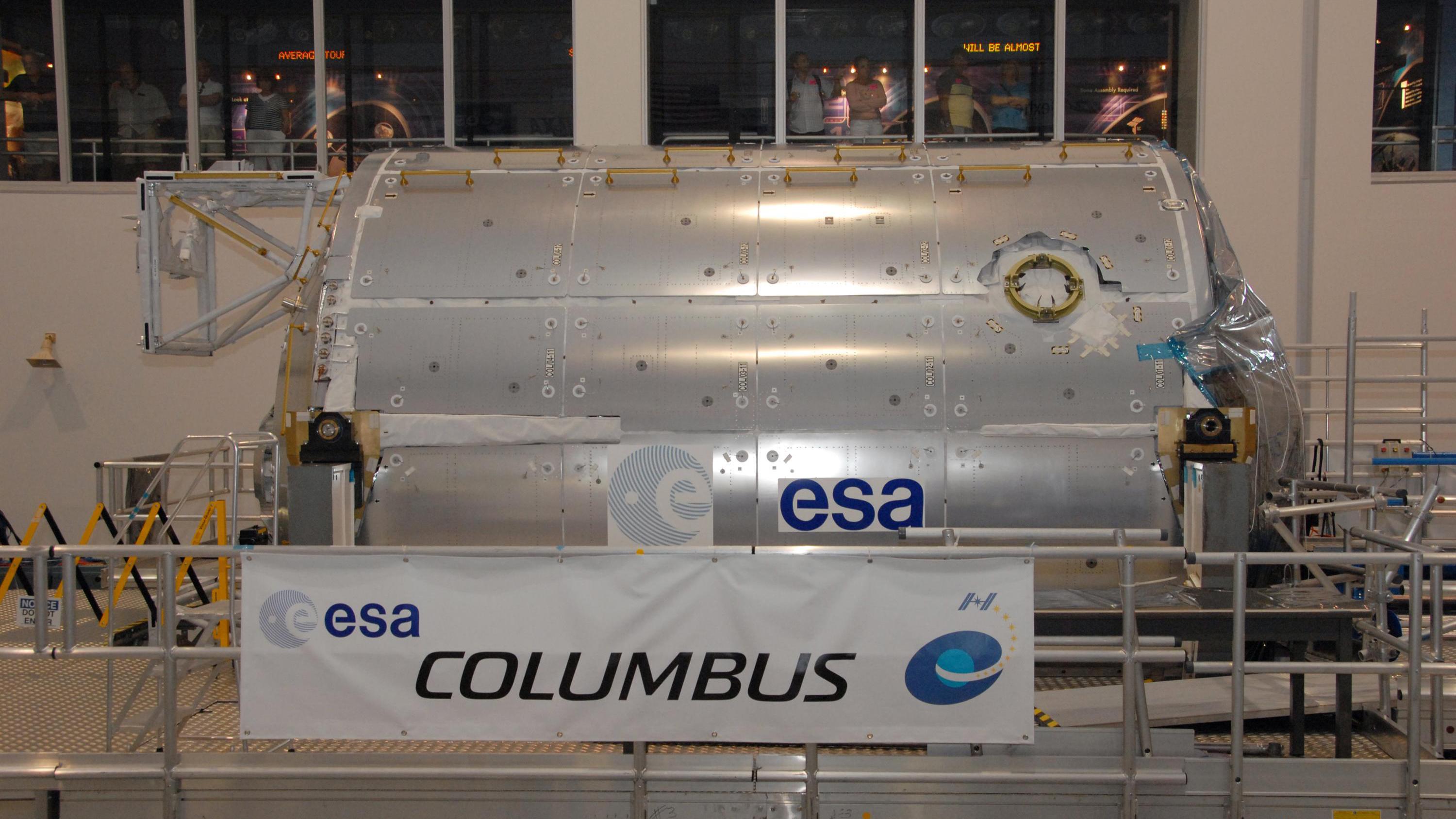 Das europäische Columbus-Labor während der Vorbereitungen im Kennedy Space Center