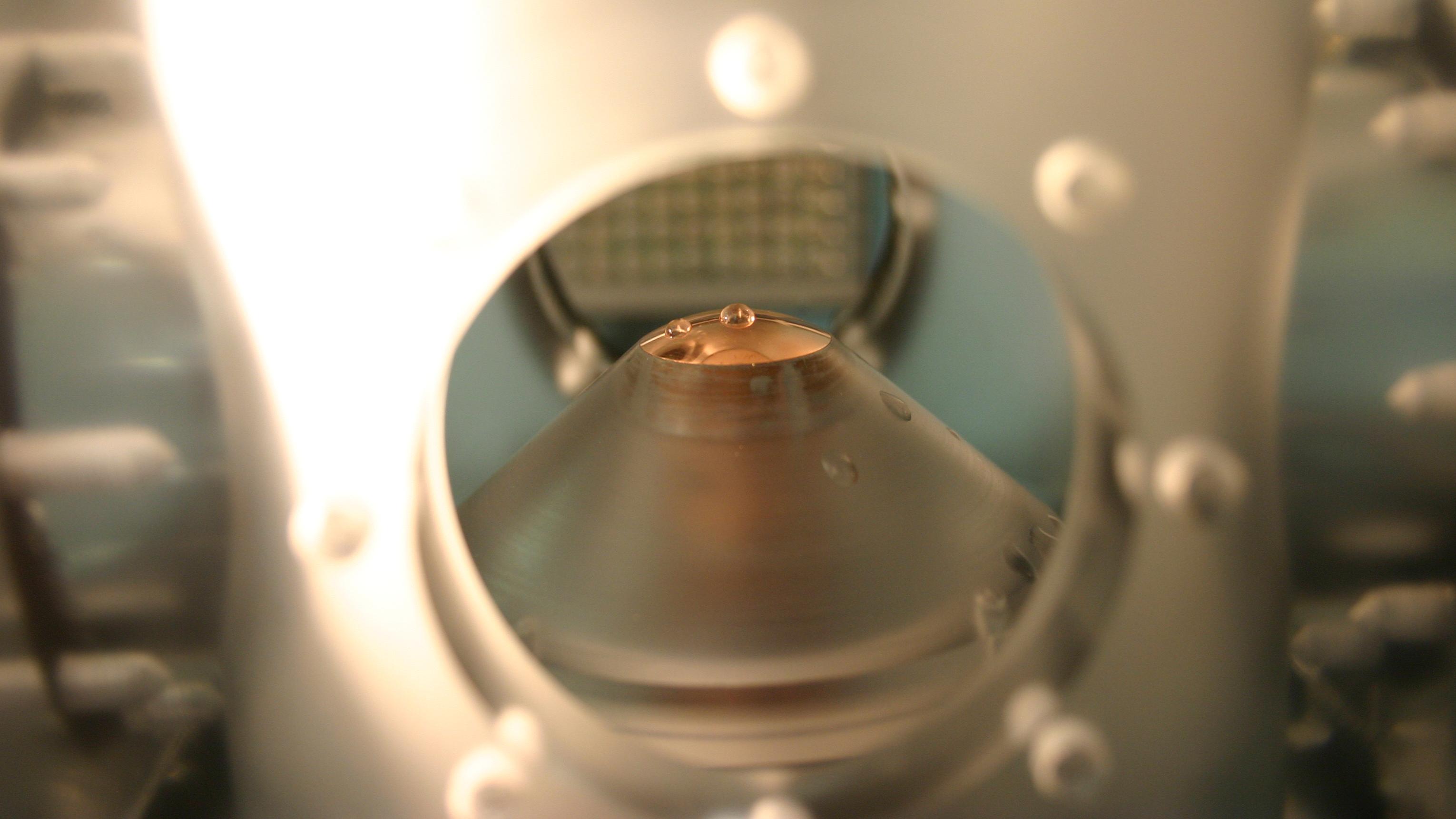 Bei diesem Experiment geht es um das Verhalten von Flüssigkeiten, die als fein dosierte Sprays auf heiße Oberflächen auftreffen – etwa bei der Gemischbildung in Brennkammern, bei Sprühbeschichtungen in der Materialbehandlung oder bei der Kühlung von hochleistungsfähigen Elektronik-Bauteilen.