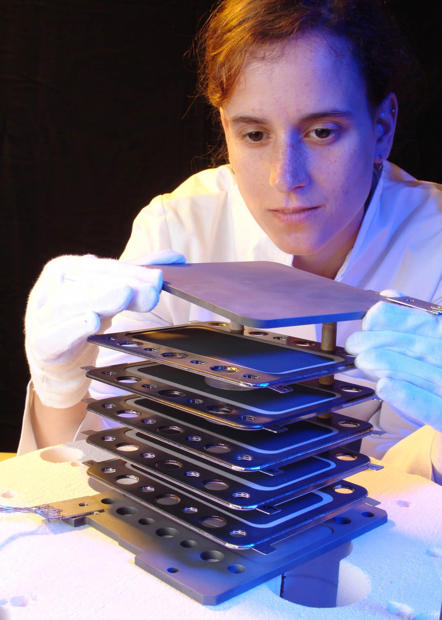 DLR-Jungwissenschaftlerin mit SOFC-Stack