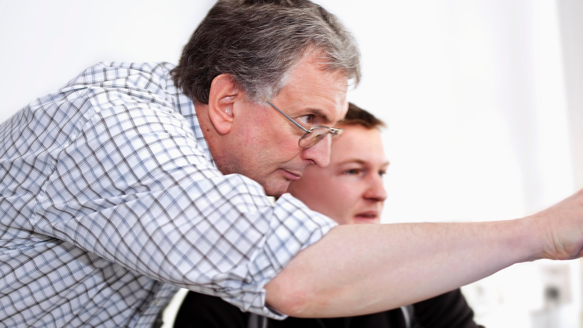 Der DLR-Wissenschaftler Alan Harris arbeitet gerne mit jungen Kollegen wie Michael Mommert zusammen. Doktorand und Doktorvater tauschen sich regelmäßig über Fachfragen aus.