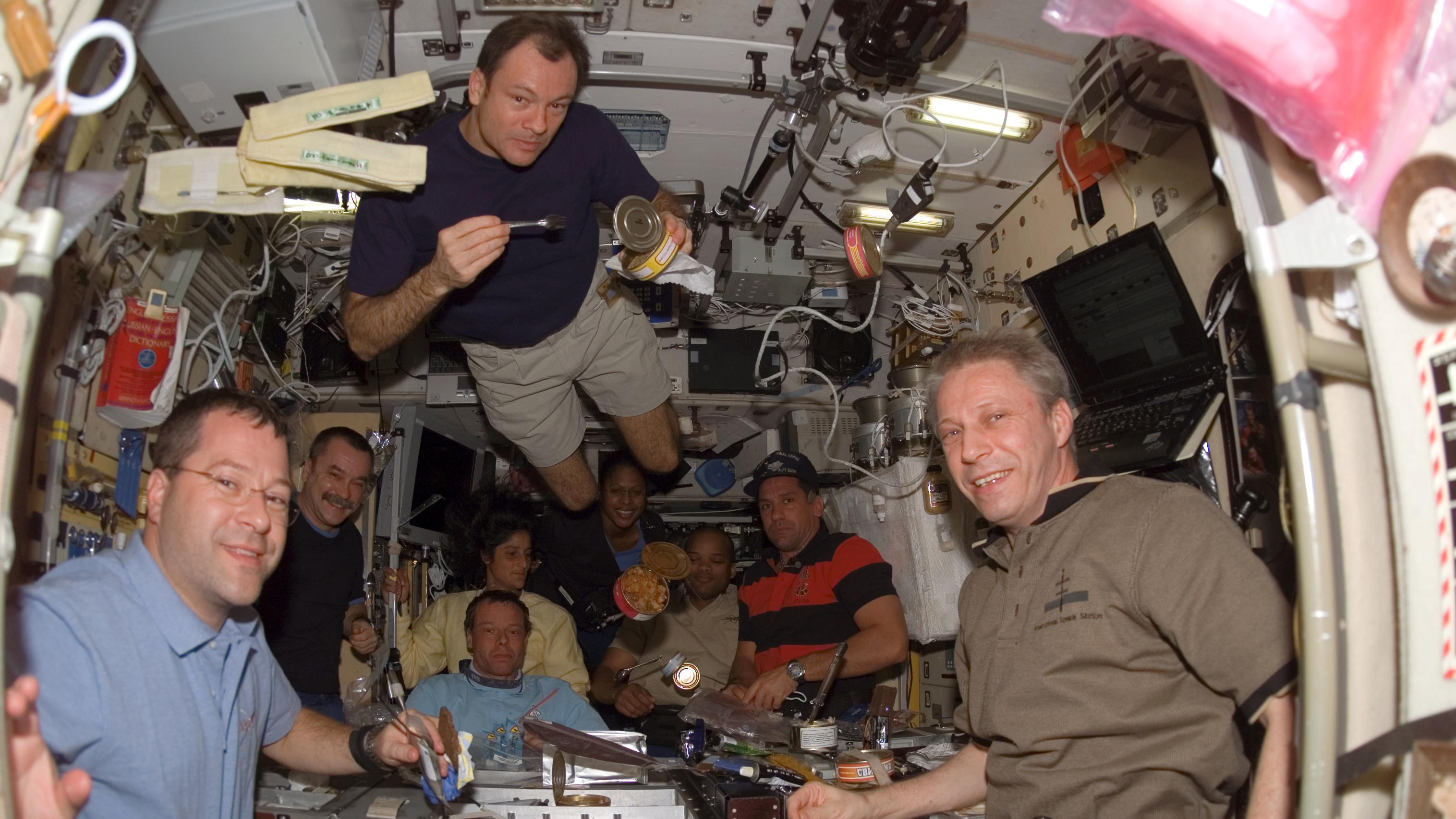 Gemeinsames Essen im Zvezda Service Modul der ISS