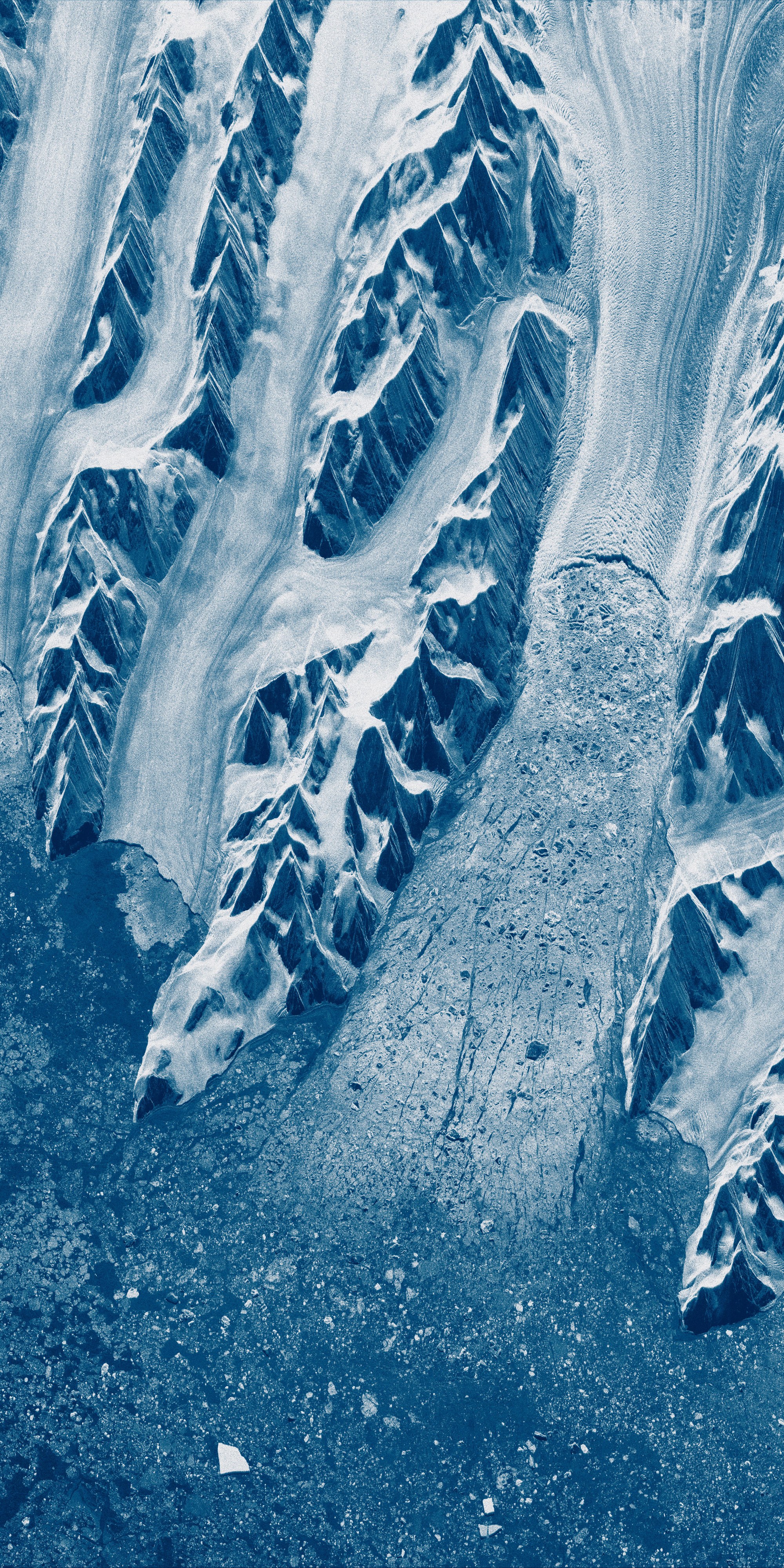 Das TerraSAR-X-Radarbild zeigt eine Region, die vor fünf Jahren noch völlig vom Eisschelf bedeckt war, unter neuen Bedingungen: Heute kalben die Eisströme direkt in das Meer, das weitgehend mit Meereis bedeckt ist. Der Larsen-Eisschelf hat sich in den letzten 60 Jahren um etwa einen Kilometer pro Jahr zurückgezogen.