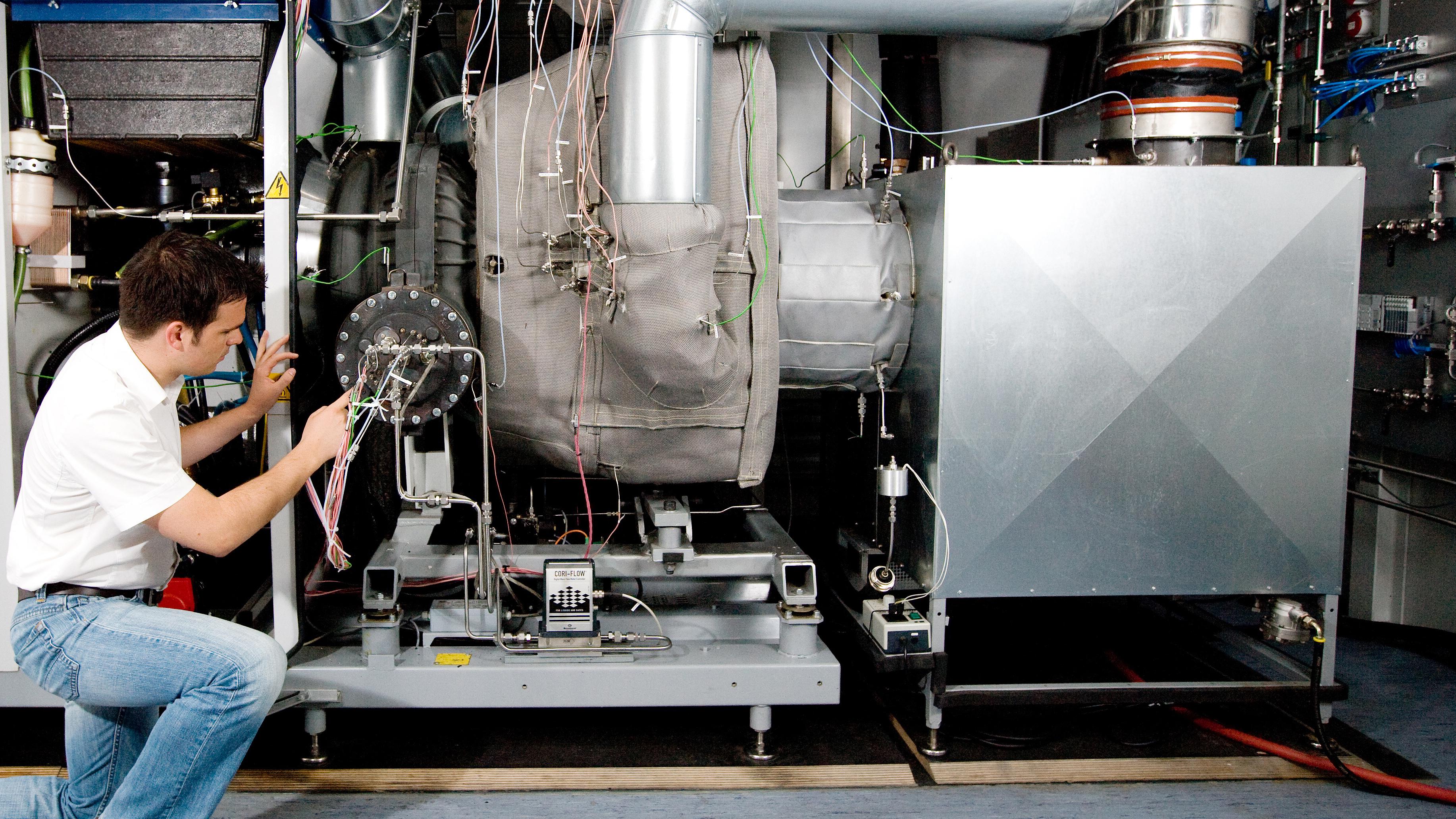 Blockheizkraftwerke zur dezentralen Strom- und Wärmeerzeugung basieren derzeit noch überwiegend auf Kolbenmaschinen. Eine zukunftsträchtige Alternative sehen Forscher in der Mikrogasturbine, einer kleinen Gasturbine im Leistungsbereich von wenigen bis maximal 500 Kilowatt elektrische Leistung. Im Vergleich zu konventionellen Gasmotoren hat sie gleich mehrere Vorteile: Sie ist flexibel gegenüber dem verwendeten Brennstoff, stößt weniger Schadstoffe aus und ist bedingt durch ihre einfache Bauweise wartungsarm. Im DLR-Institut für Verbrennungstechnik wurde eine Mikrogasturbine Turbec T100 in einem Labor aufgebaut, zu Forschungszwecken modifiziert und mit umfangreicher Prüfstandsmesstechnik ausgestattet.