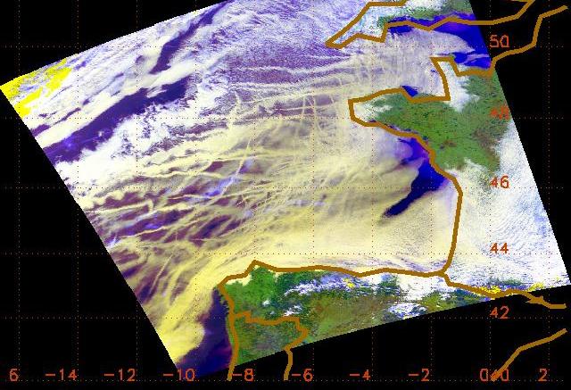 Auf Satellitenbildern findet man in Regionen mit hohem Schiffsverkehr lang gestreckte, tief liegende Wolken, die eindeutig nicht natürlichen Ursprungs sind. Diese so genannten Ship Tracks sind Folge von Schiffsemissionen.