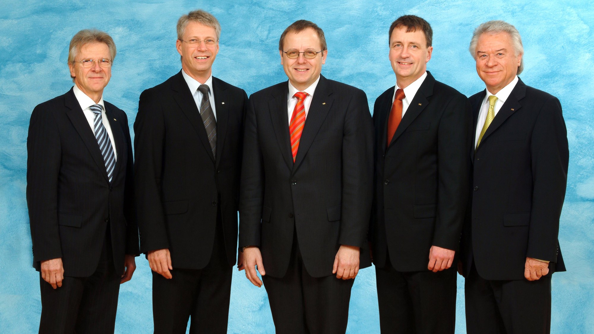 Seit dem 1. Oktober 2007 gehört Thomas Reiter zum DLR-Vorstand. Von links: Prof. Dr.-Ing. Joachim Szodruch, Thomas Reiter, Prof. Dr.-Ing. Johann-Dietrich Wörner, Klaus Hamacher und Dr. Ludwig Baumgarten.