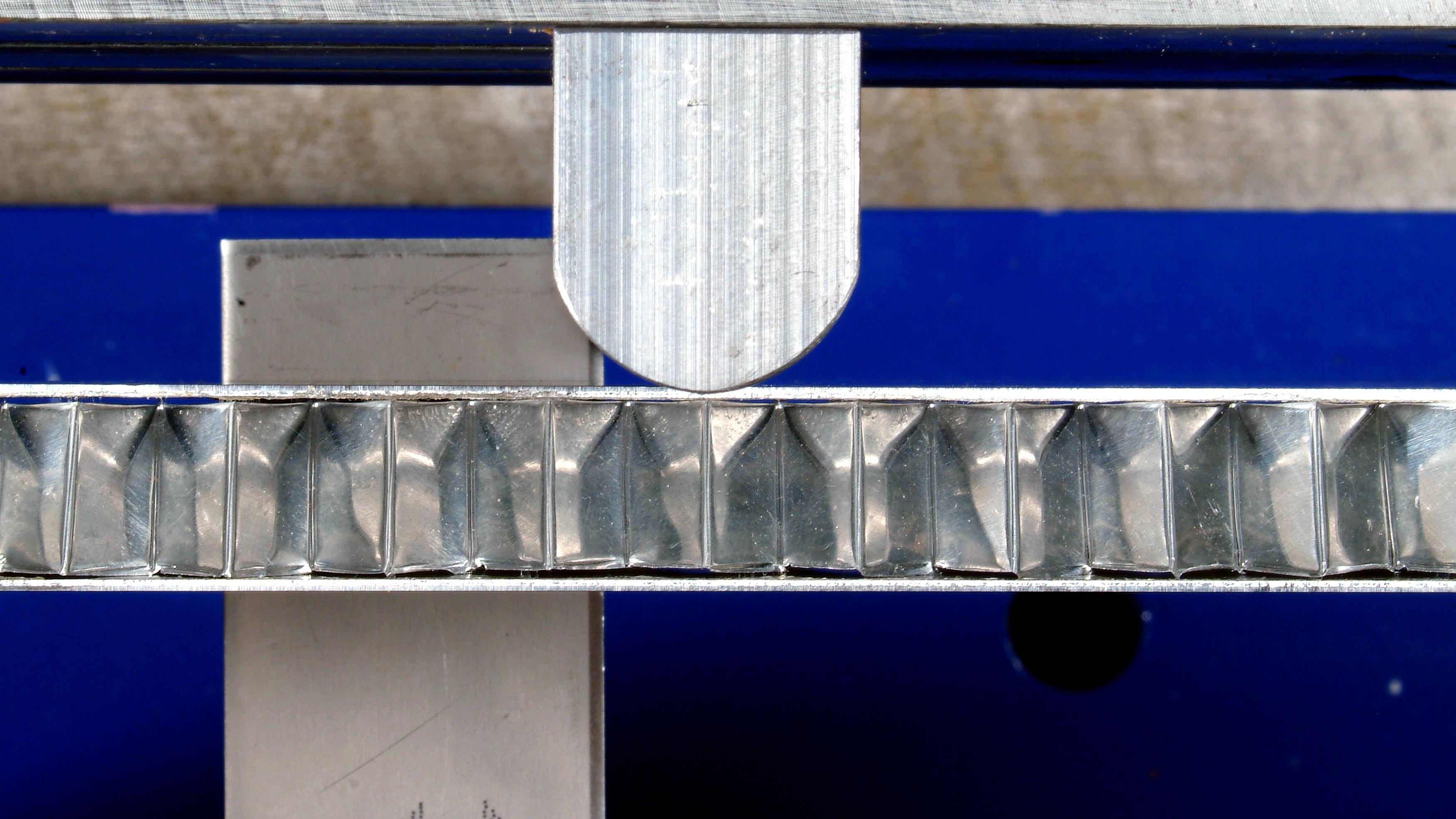 Sandwichstruktur mit neuartigem Faltwaben-Kern im Belastungstest