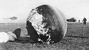 Die Kapsel des Wostok-Raumschiffs nach der Landung