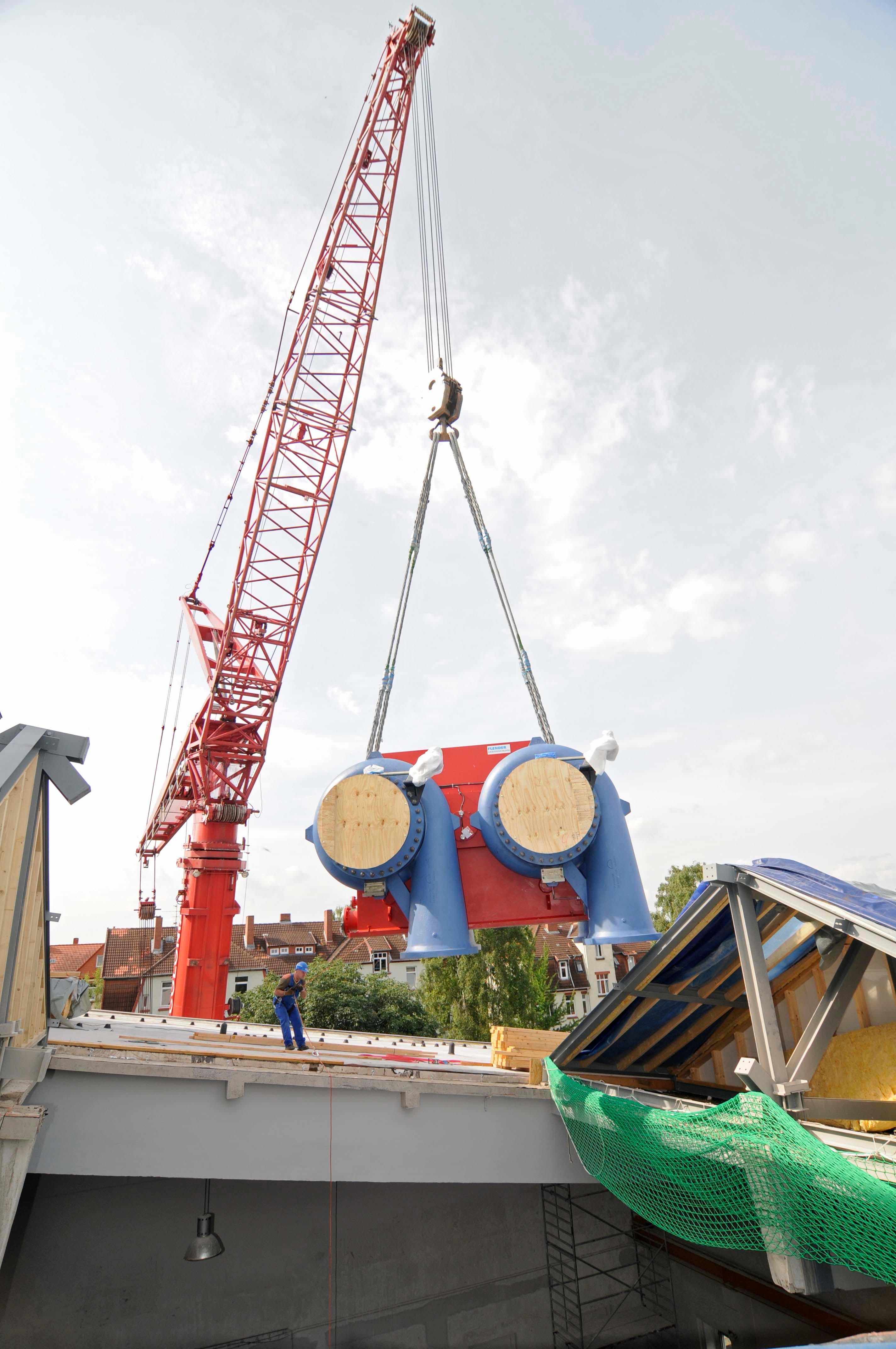 Ein 100 Tonnen schwerer Spezialkran stellte den Verdichter auf