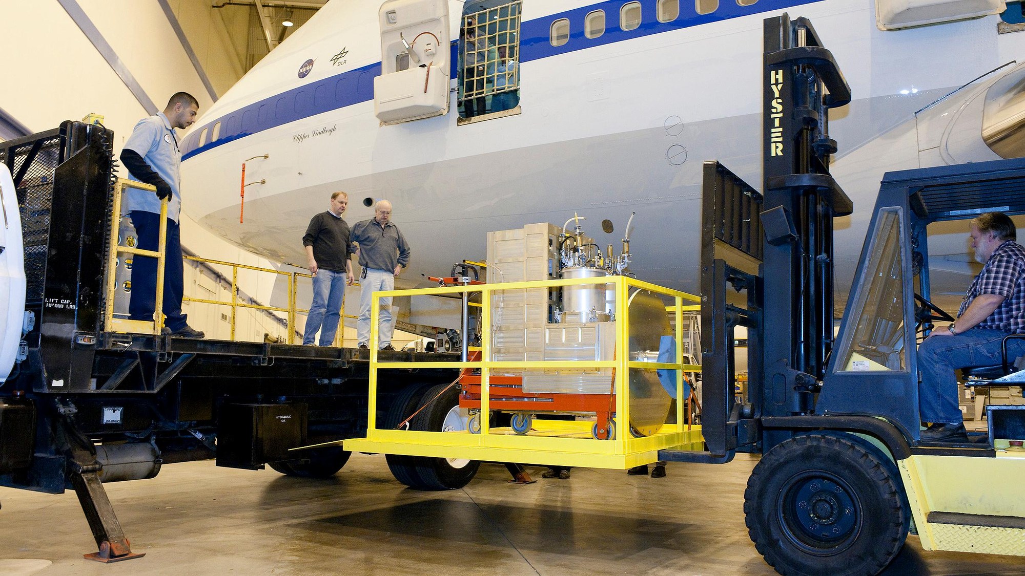 Einschließlich des Transportwagens werden hier rund 700 Kilogramm empfindlichster Elektronik mit äußerster Sorgfalt bewegt.