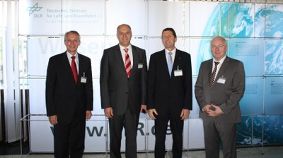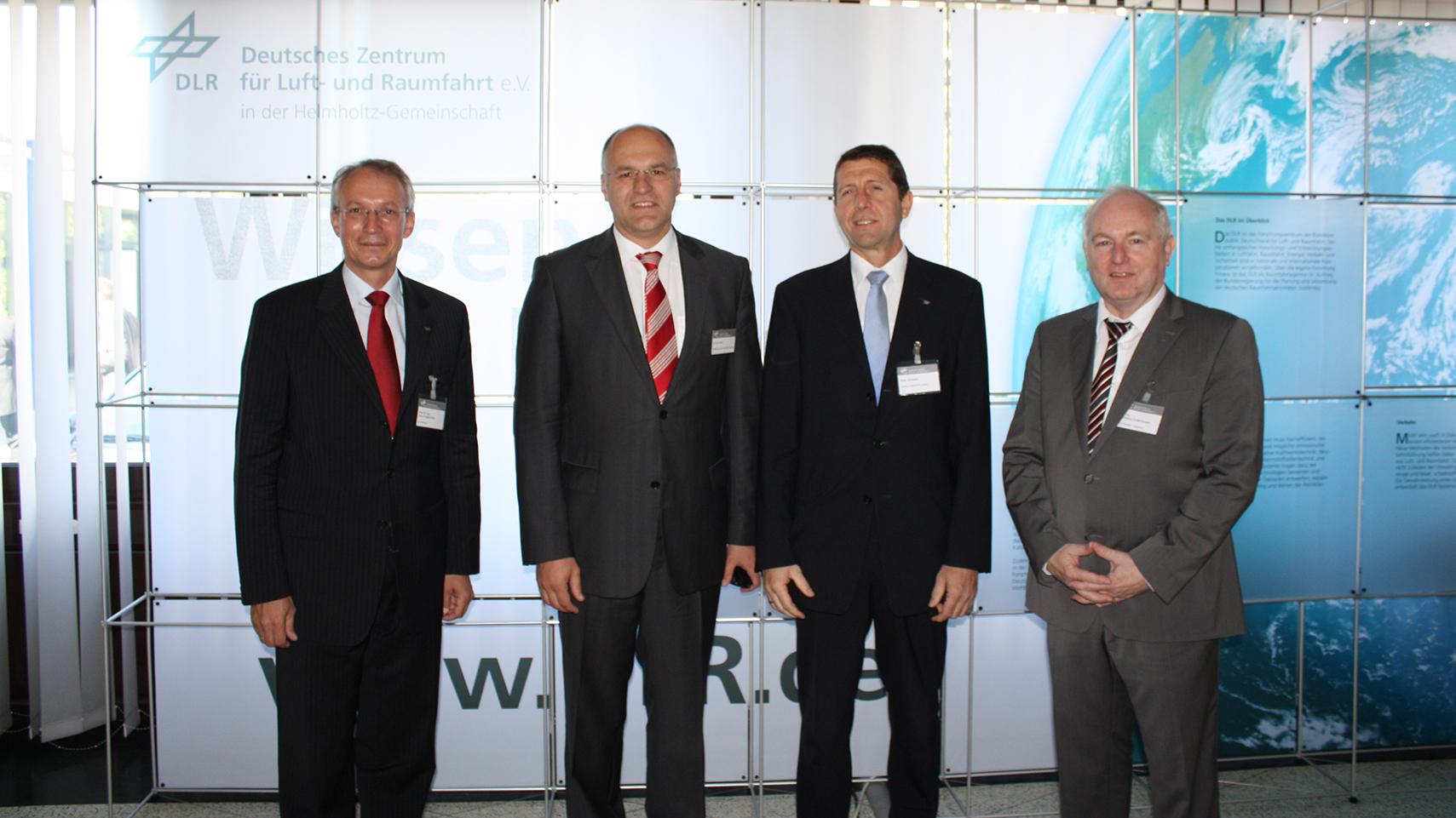 Oberbürgermeister Dr. Kurt Gribl und Peter Schwarz von der Premium AEROTEC GmbH eröffneten das Kolloquium mit einem Grußwort. Im Bild (v.l.n.r.): Prof. Dr.-Ing. Heinz Voggenreiter, Oberbürgermeister Dr. Kurt Gribl, Peter Schwarz, Dr.-Ing. Wolfgang Dudenhausen.