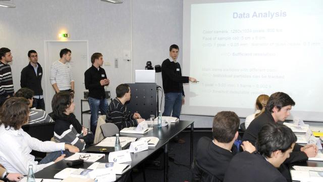 Studenten präsentieren ihren Experimentvorschlag beim Auswahl-Workshop.