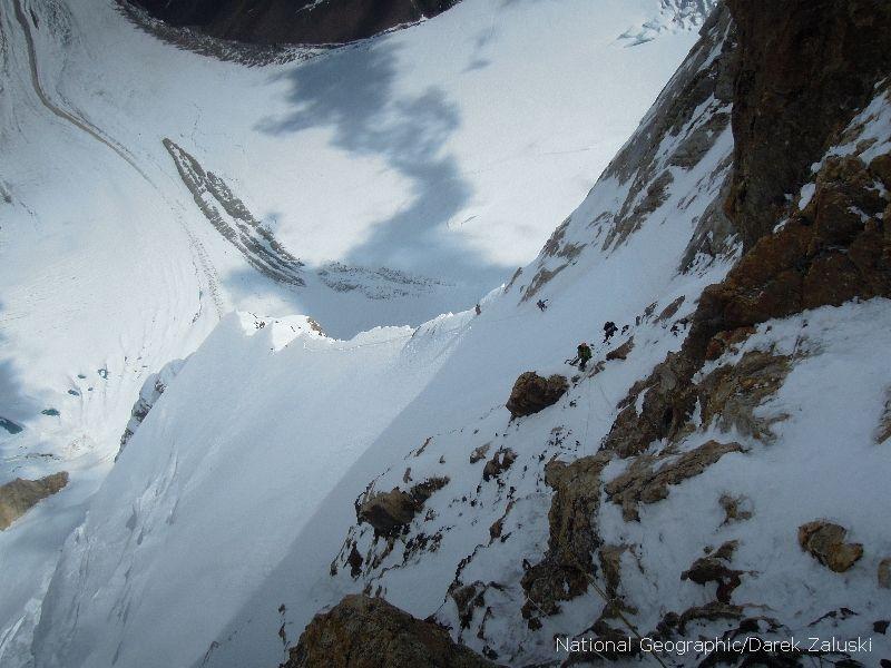 Tiefblick vom Steilaufschwung unterhalb der Felssschulter zum Firngrat.
