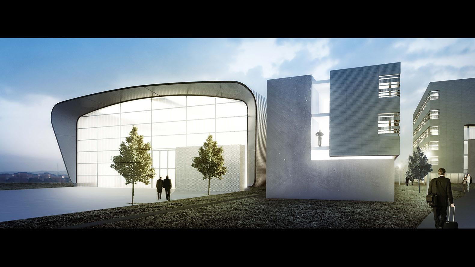 Das DLR-Zentrum für Leichtbauproduktionstechnologie in Augsburg - künstlerische Darstellung