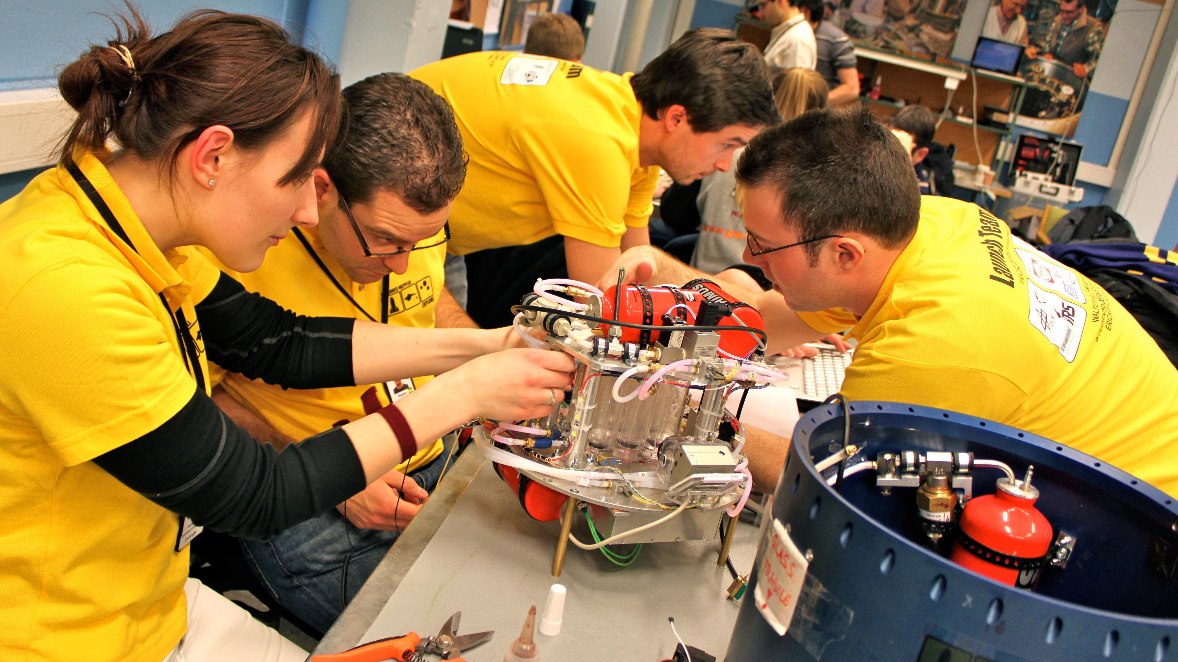 Kurz vor dem Raketenstart überprüft das EXPLORE-Team aus Stuttgart noch einmal alle Funktionen seines REXUS-Experiments.