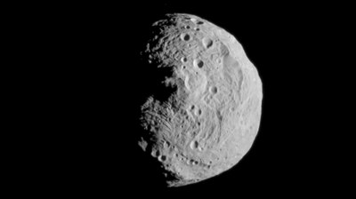 Diese Aufnahme des Asteroiden Vesta gelang dem Kamerasystem an Bord der NASA-Raumsonde Dawn am 17. Juli 2011 aus einer Entfernung von etwa 15.000 Kilometern. Ein Pixel entspricht in etwa 1,4 Kilometern.