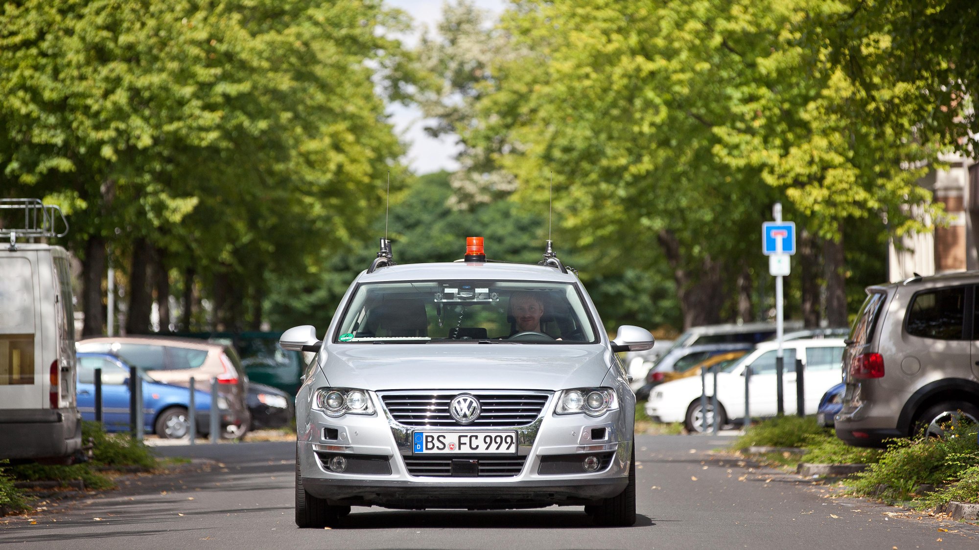 Das Versuchsfahrzeug FASCar empfängt von der nächsten Ampel Informationen über die Dauer der aktuellen Rotphase.