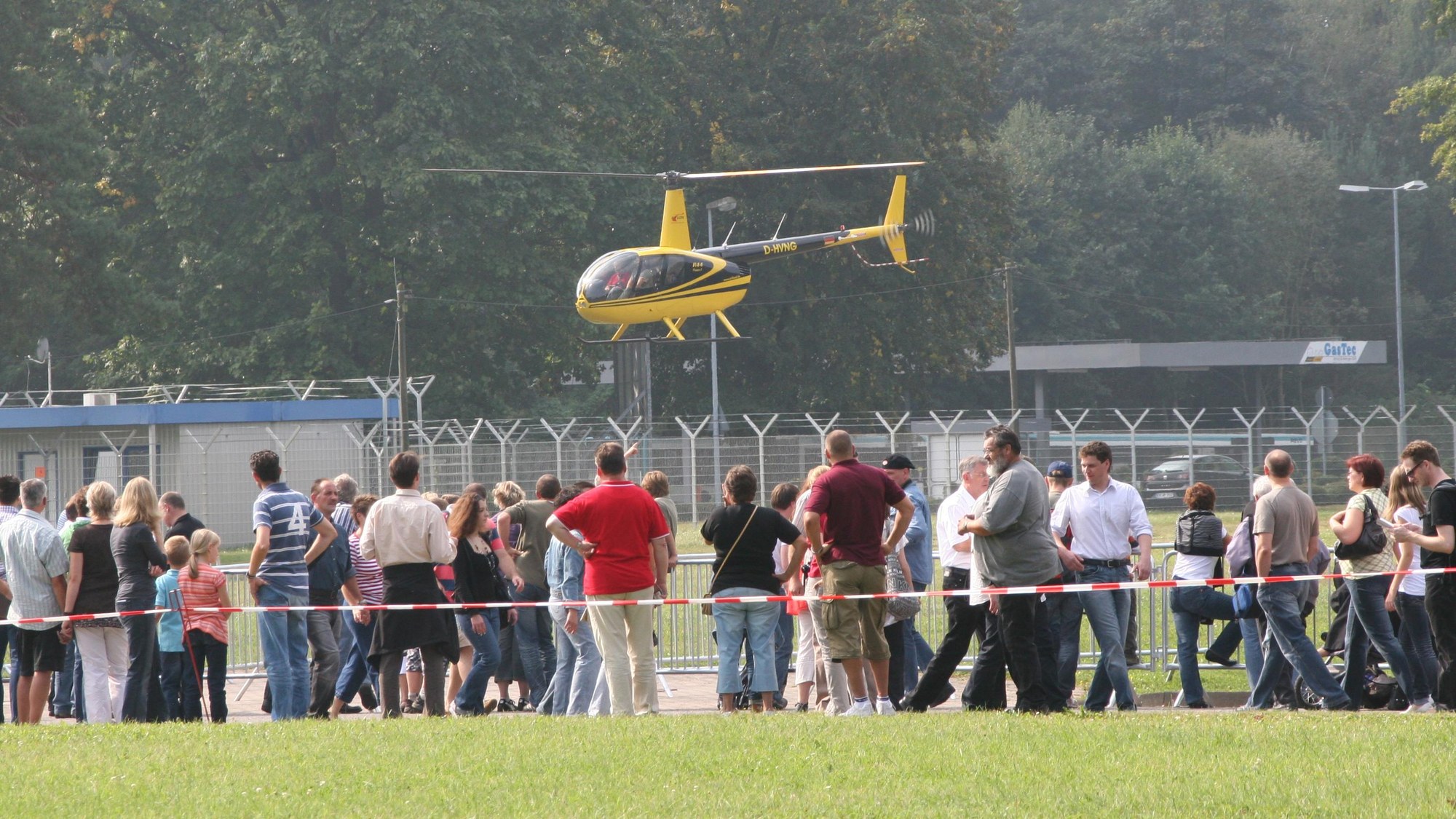 Fasziniert beobachten die Zuschauer die Landung der Helikopter auf dem DLR-Gelände.