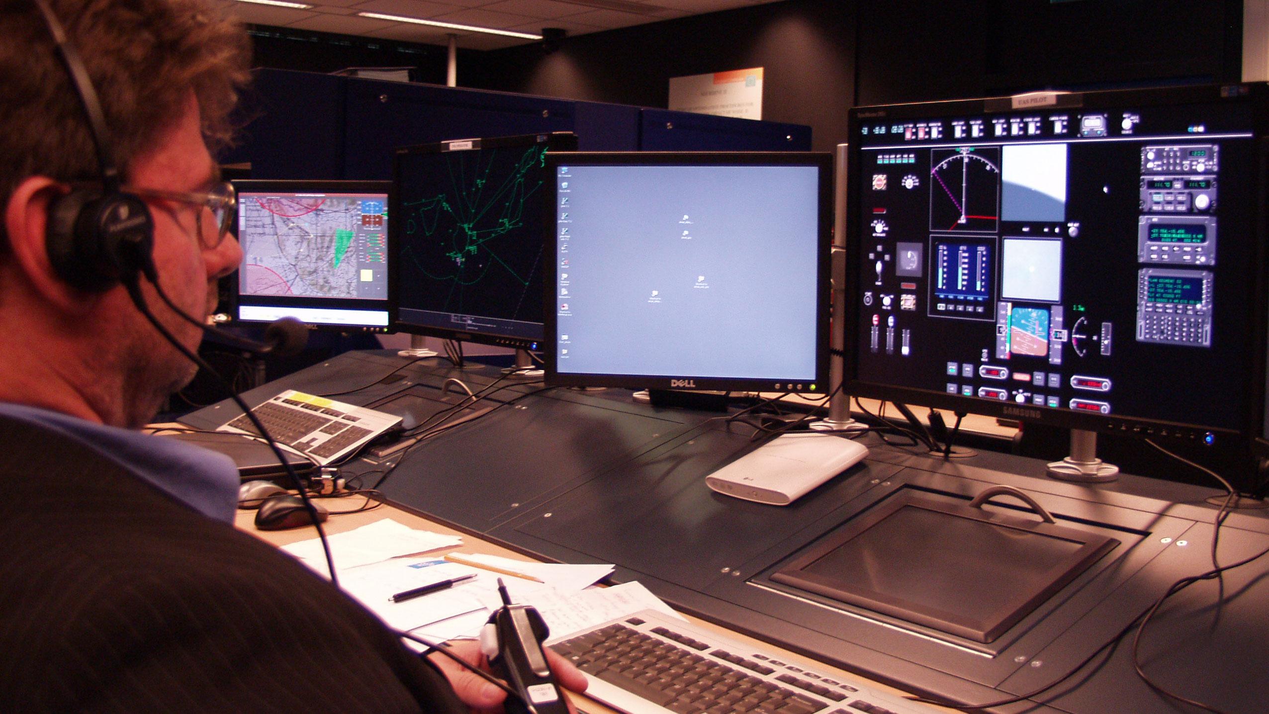 Ein Pilot steuert den Flug eines UAS vor einer Bodenkontrollstation während der ESA-Studie "Satellites for the Integration in Nonsegregated Airspace of UAS in Europe".
