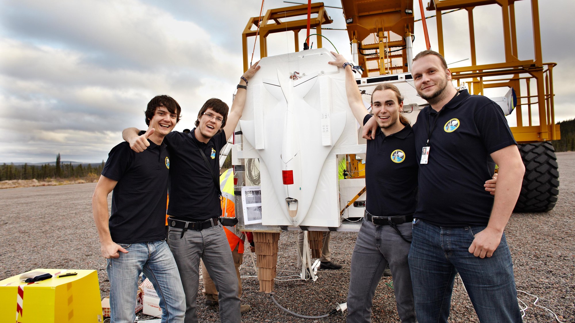 Das Team von der Universität Stuttgart testet auf dem Ballon-Flug seinen VEXREDUS-Gleiter.