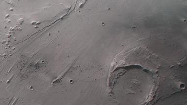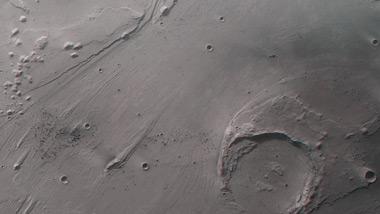 Aus dem senkrecht auf den Mars blickenden Nadirkanal des Kamerasystems HRSC auf der ESA-Sonde Mars Express und einem der vier schräg auf die Marsoberfläche gerichteten Stereokanäle lassen sich so genannte Anaglyphenbilder erzeugen, die bei Verwendung einer Rot-Blau-(Cyan)- oder Rot-Grün-Brille einen dreidimensionalen Eindruck der Landschaft vermitteln; Norden ist rechts im Bild. Durch die dreidimensionale Betrachtung lässt sich gut erkennen, wie der Wasserspiegel des Flusses, der durch Ares Vallis geflossen ist, das umgebende Hochland auf unterschiedlichen Höhenniveaus wegerodiert hat. Deutlich wird auch, dass einzelne Inseln als Hindernisse im Flusslauf existierten und von den Wassermassen stromlinienförmig umströmt wurden. Das plateauartige Hochland zu beiden Seiten von Ares Vallis liegt etwa eintausend Meter höher als der Talgrund. Der größte Krater im Bild trägt den Namen Oraibi und hat einen Durchmesser von 32 Kilometern. Sein südöstlicher Rand wurde von den Wassermassen abgetragen, so dass es ins Kraterinnere strömte und dort Sedimente ablagern konnte.