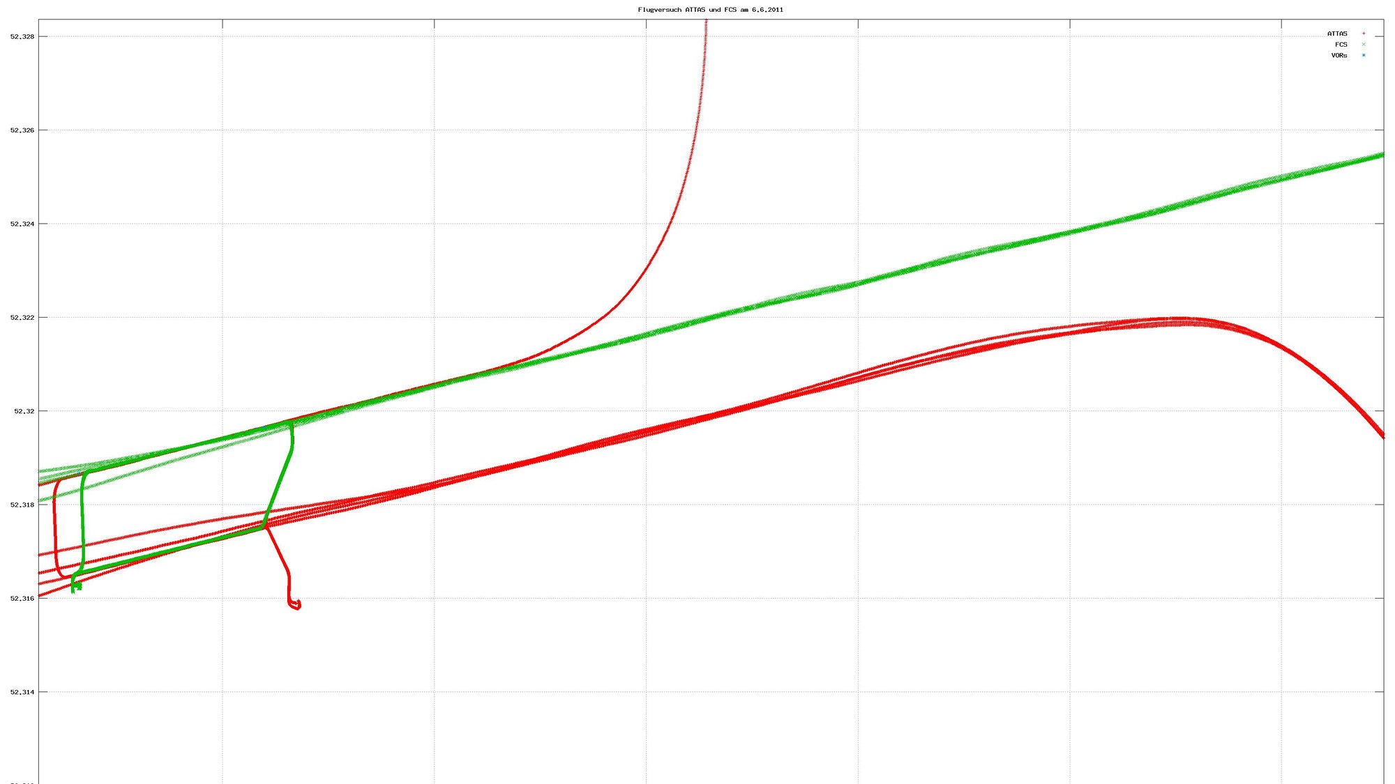 Flugspuren der Versuche zu den parallelen Anflügen auf den Flughafen Braunschweig-Wolfsburg.