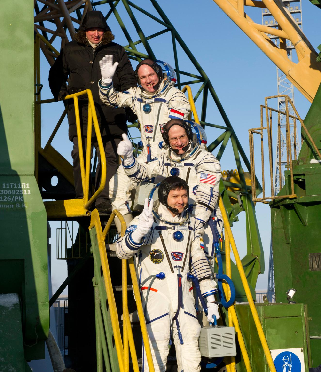 Für André Kuipers (Zweiter von oben) findet dieses Jahr das Weihnachtsfest auf der ISS statt
