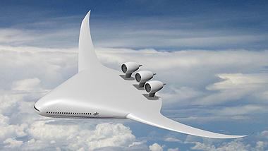 Wie sieht das Flugzeug der Zukunft aus? Dieser Frage gehen Wissenschaftler des Deutschen Zentrums für Luft- und Raumfahrt (DLR) nach. Eine mögliche Variante ist ein so genannter Blended Wing Body (BWB), also ein Flugzeug, dessen Rumpf fließend in den Flügel übergeht. Diese Flugzeuge sollen mehr Platz für Passagiere bieten, leichter sein und weniger Treibstoff verbrauchen. DLR-Wissenschaftler haben jetzt erstmals den Rumpf sowie eine Kabinengestaltung am Computer zusammengeführt und eine theoretische Grundlage für den erweiterten integrierten Flugzeugentwurf geschaffen.