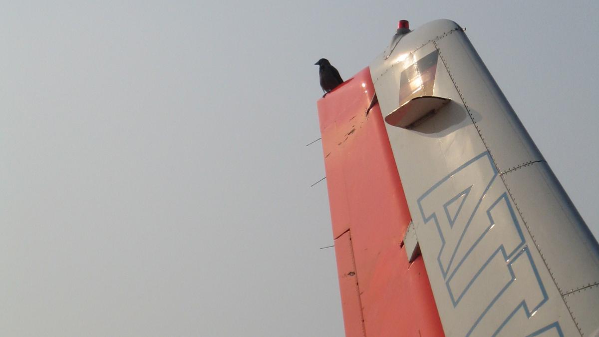 Das Foto wurde im Jahr 2006 aufgenommen. Ein Vogel hatte es sich auf dem Forschungsflugzeug bequem gemacht.