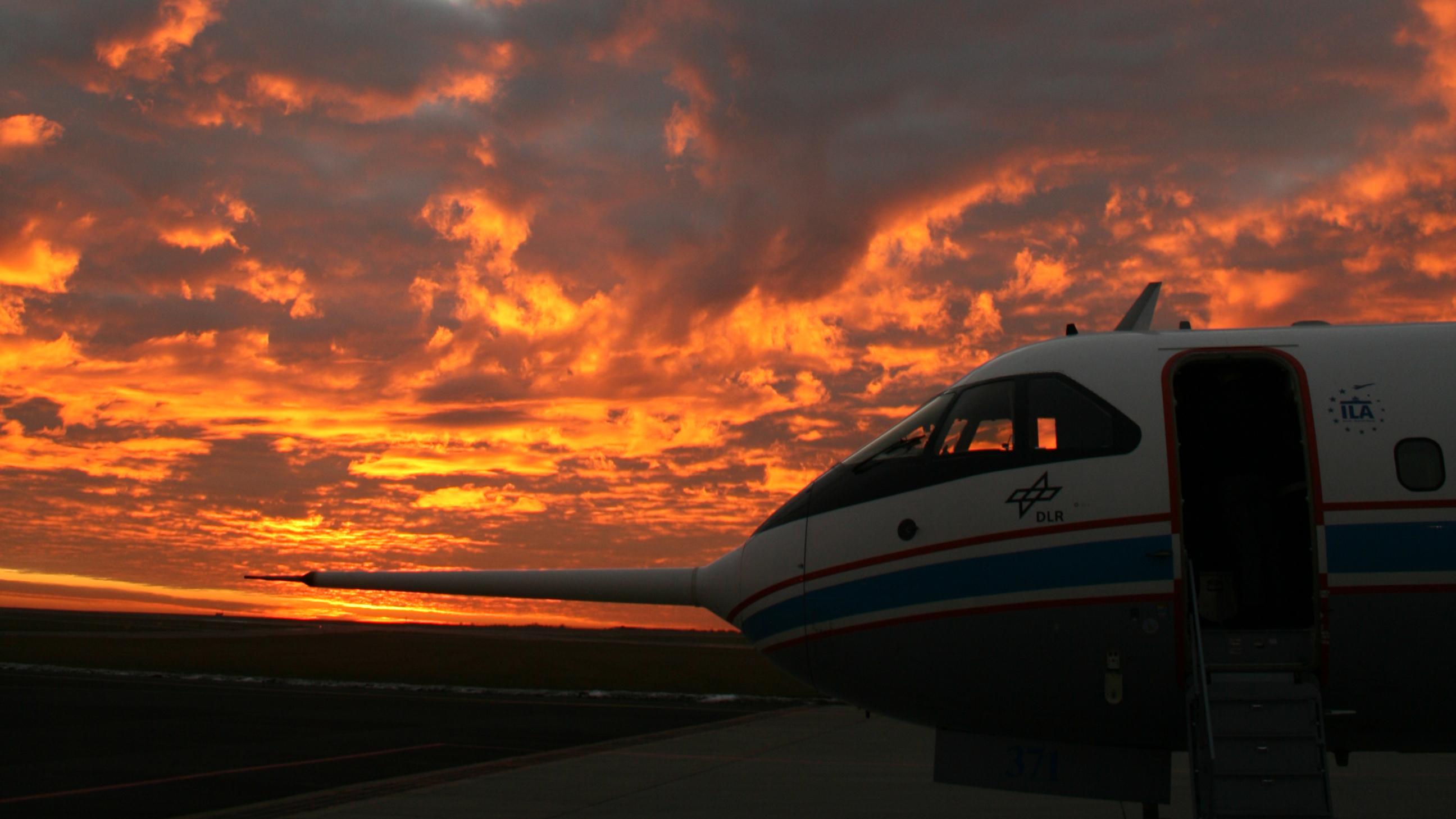 Das Bild zeigt das Forschungsflugzeug ATTAS auf dem Flughafen in Prag. Im Projekt "EMMA" (European Airport Movement Management) führten die DLR-Wissenschaftler im Jahr 2008 Tests zur Verkehrserfassung und Landebahnüberwachung durch.